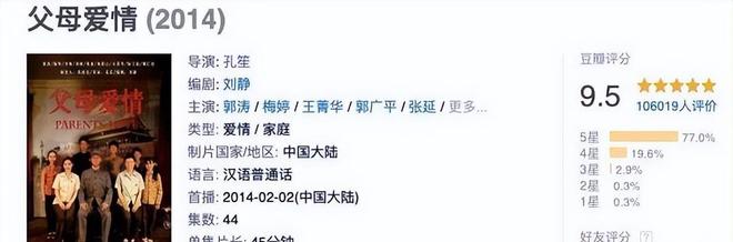 自此《父母愛情》的豆瓣評分也由起初的8.8分,上升至現在的9.5分。