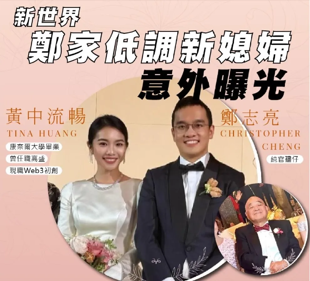 12月10日,刚升任周大福联席CEO的“周大福三公子”郑志亮迎娶女友Tina Huang。