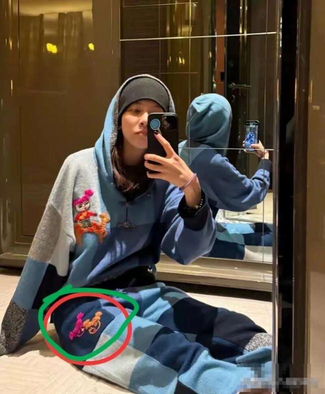 恰好没多久,宋妍霏也发布了一组跨年照片,其中一张自拍照中,宋妍霏身上衣服的图案,正是两个扎辫子的女孩,看起来和窦靖童那个图案简直一模一样。