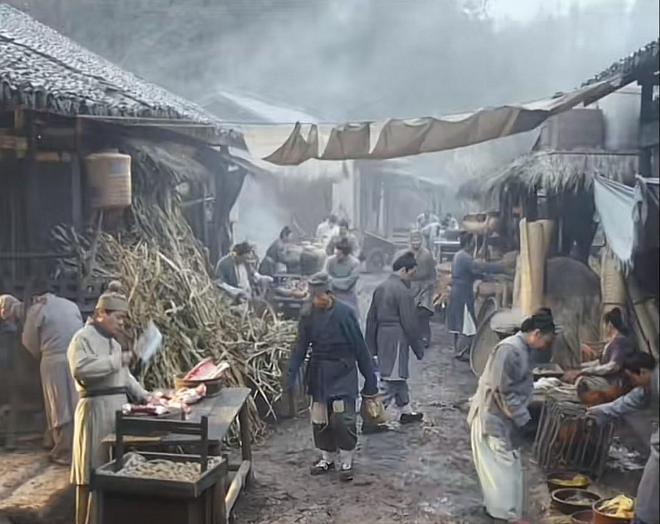 剧中不见金碧辉煌的皇家宫殿,亦无奢华繁复的贵族服饰,取而代之的是雨后泥泞的街巷、百姓身着的粗布旧衣,以及为生活奔波劳碌的生动群像。