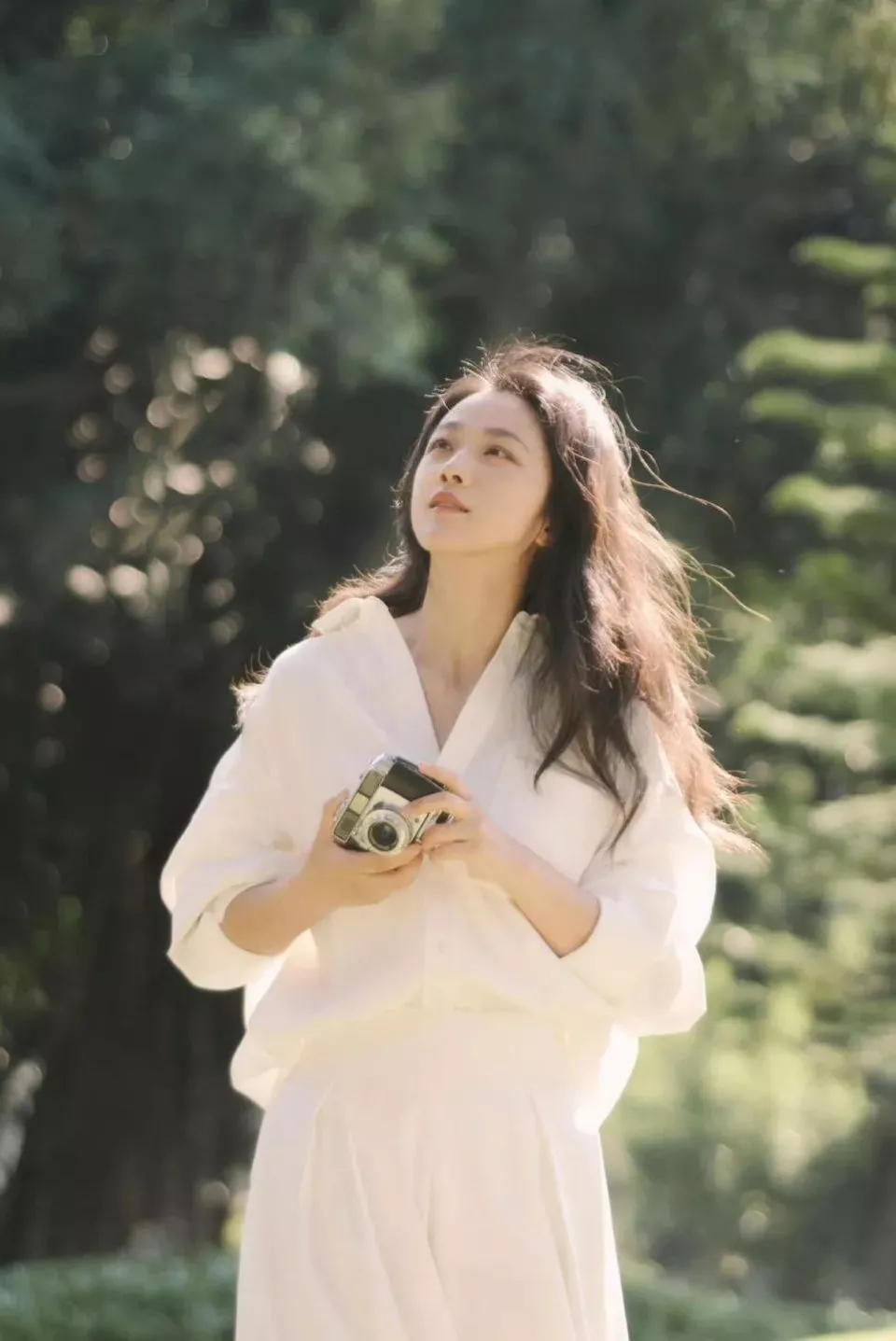 穿搭上,莫兰迪色系和浅色系很适合她。尤其是all white穿搭,能增添呼吸感,轻盈又灵动。