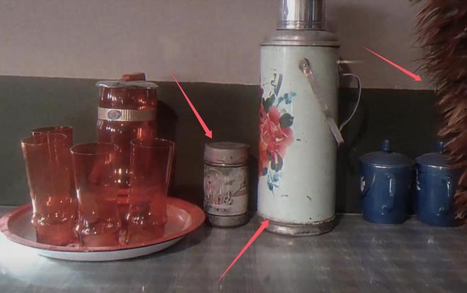 桌子上放著掉漆的熱水壺,還有茶缸等等,但凡是多看一眼,就會覺得自己這是夢回童年了。