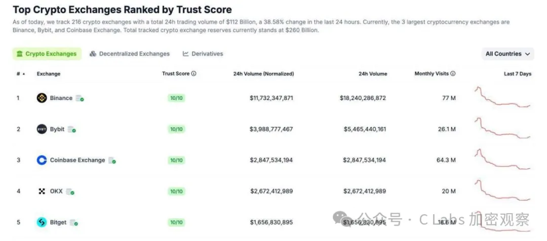 美国引以为傲,举全国之力(SEC制定比特币ETC托管商)热捧的下,Coinbase的交易量常年只有币安的零头。