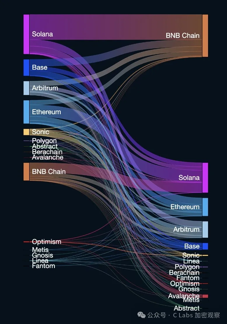 然而好景不长,CZ亲自下场meme喊单业务只有几天,链上资产就大规模的从solana流向币安链: