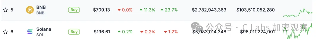 而在币价层面,solana也掉回了川普发币之前的价格,而BNB在市值上也完成了强势反超,升至加密货币第五位:
