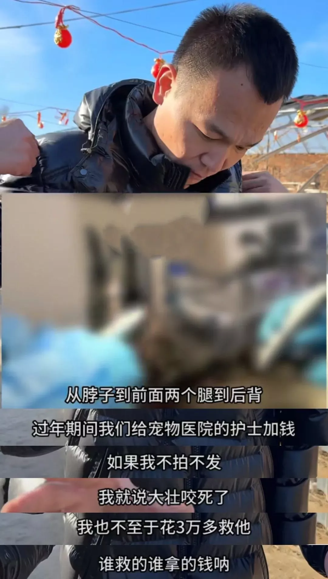 再再然后,潘宏居然为了证明自己对狗很好,说了一只叫大壮的狗的事,这只狗也是过年期间在潘宏园区出事,被一只名叫八千的狗从脖子到后背全部咬开,花了三万多元治疗最终身亡,之后潘宏协商给大壮主人赔了一只小狗。