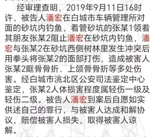 让我不解的是直到今天也没有有关单位出来阐述事件,任由其发酵,只有网友扒出的潘宏造成对方轻伤一级的刑事判决书。