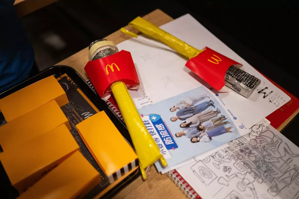 2月,在遭麥當勞解雇後,程展緯在香港舉行的新聞發布會上使用的一些道具。