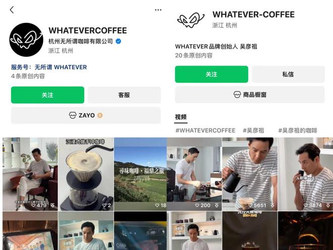 2024年,由吴彦祖投资开设的咖啡品牌WHATEVER COFFEE在四川成都正式落地营业,其品牌视频号中发布的内容也由吴彦祖本人出镜进行宣传。据企查查数据显示,该品牌所属公司“杭州无所谓咖啡有限公司”与“雅识教育”相似,也是由上海斐鑫然文化传播有限公司旗下的玩美祖合品牌管理公司投资成立的,吴彦祖则成为了WHATEVER COFFEE的品牌创始人。