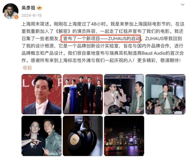 翻阅吴彦祖的微博也可以发现,由他主导的品牌创新设计实验室项目“ZUHAUS”也在2024年6月启动,目前,该项目已经与瑞典耳机制造商Baud Audio、潮牌CYCLEPAL CYCLEPAL、骑行品牌森瑞梦等展开合作,推出联名设计款。而此前吴彦祖投资过潮牌、寿司店、健身房等多种商业业态,但大多都反响平平,营收未必可观。