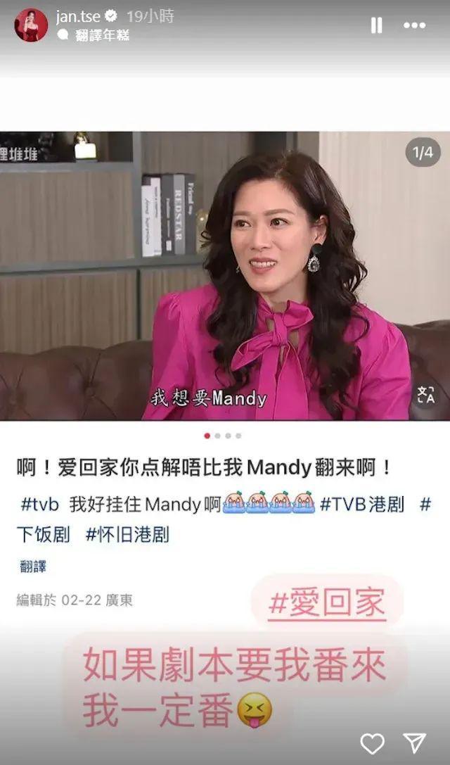 不过《爱回家》最近播出的一集剧集中,大小姐突然提到Mandy:“Mandy说在英国有新计划”、“我想要Mandy回来”,引发了网友的热议:“是不是Mandy快要回来了?”