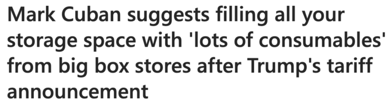 知名企業家馬克·庫班(Mark Cuban)建議民眾在大型零售商處儲備如牙膏、肥皂等消耗品,理由是即使是美國制造的商品,商家也可能借機漲價。