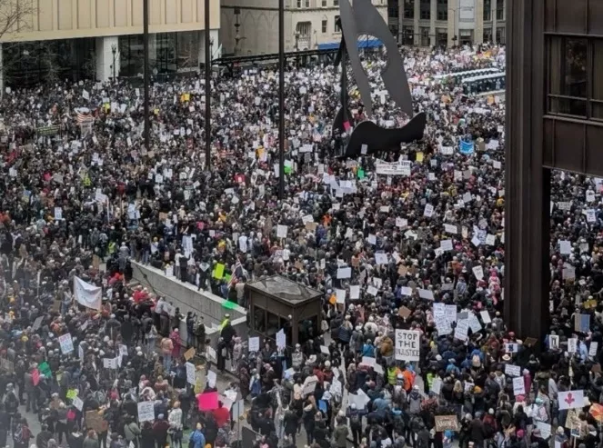 在曼哈顿的第五大道上,抗议队伍延伸了近20个街区;在西雅图,抗议者们举着写有“反对寡头统治”等标语的牌子倾泻着对特朗普的不满;在芝加哥,数千人涌入戴利广场和相邻街道;在亚特兰大,警方估计游行前往州议会大厦的人数超过2万人。