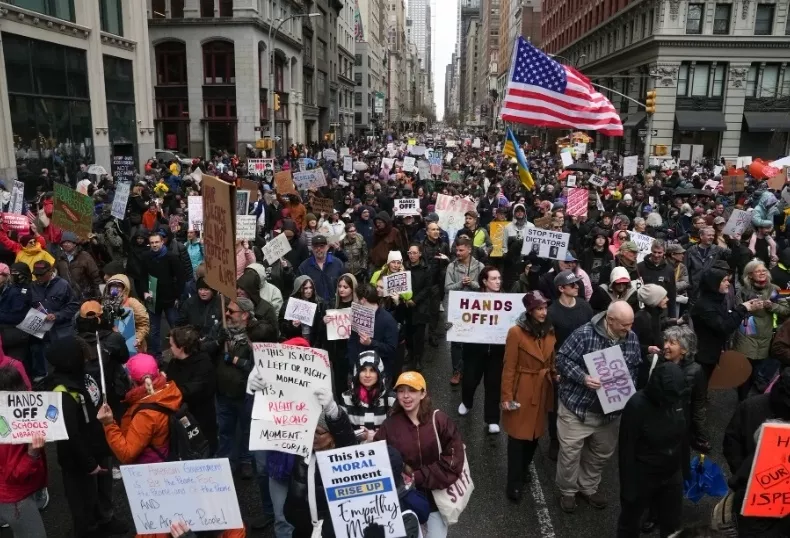 虽然很难估计人群规模,但组织者表示,已有超过60万人报名参加示威活动。抗议者反对特朗普政府与亿万富翁结盟,推动政府结构大幅缩编,导致成千上万的公务员失业,并削弱了社会福利服务。他们还对特朗普政府在移民权利、跨性别者权益等方面的政策表示强烈反对。此外,示威者批评特朗普政府在面对经济衰退时,依然强硬推行关税政策,进一步加剧了股市的不稳定和社会不安。