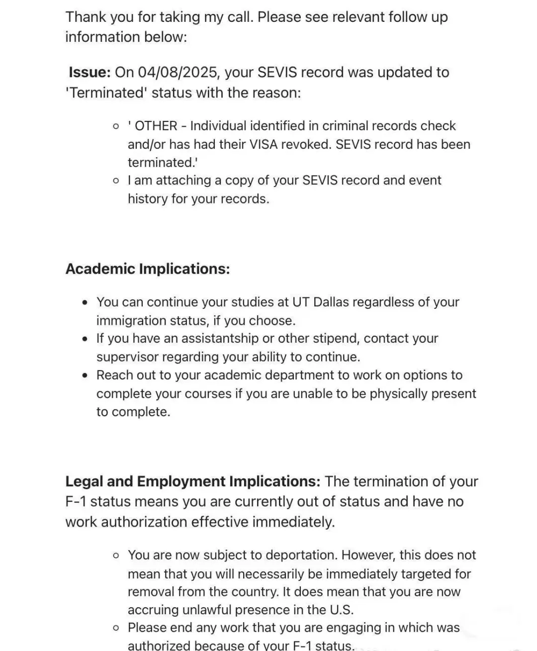 4月8日,我收到学校邮件的同一天,学校有19个同学的签证被撤销。当天有新闻报道称,在得克萨斯有75个留学生的签证被撤销,且人数还在持续增加。