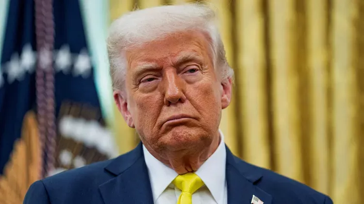 路透社18日在美國白宮的橢圓總統辦公室,拍到了川普一張略帶“憔悴”的照片。