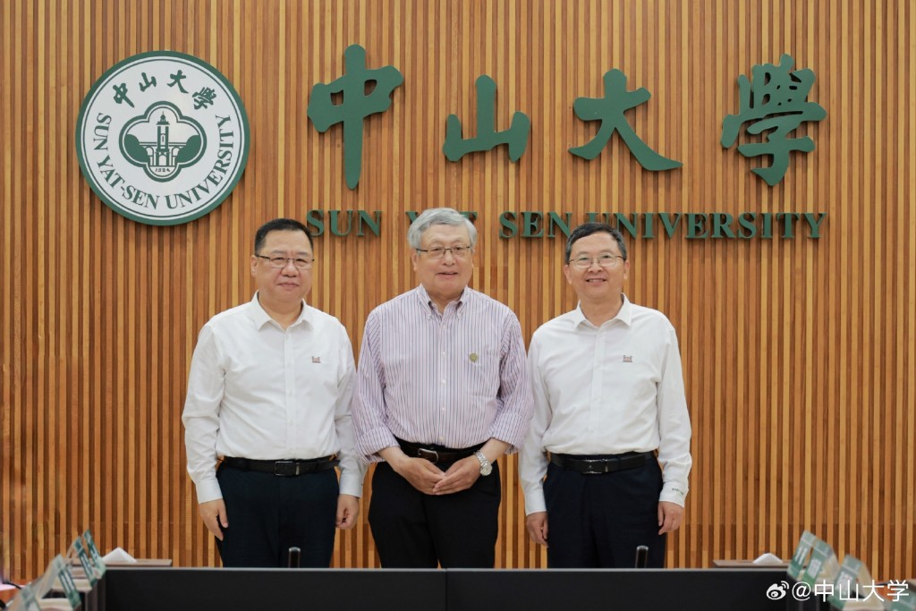 70歲的美籍華裔數學家張益唐(中)近日全職加盟中山大學。中山大學