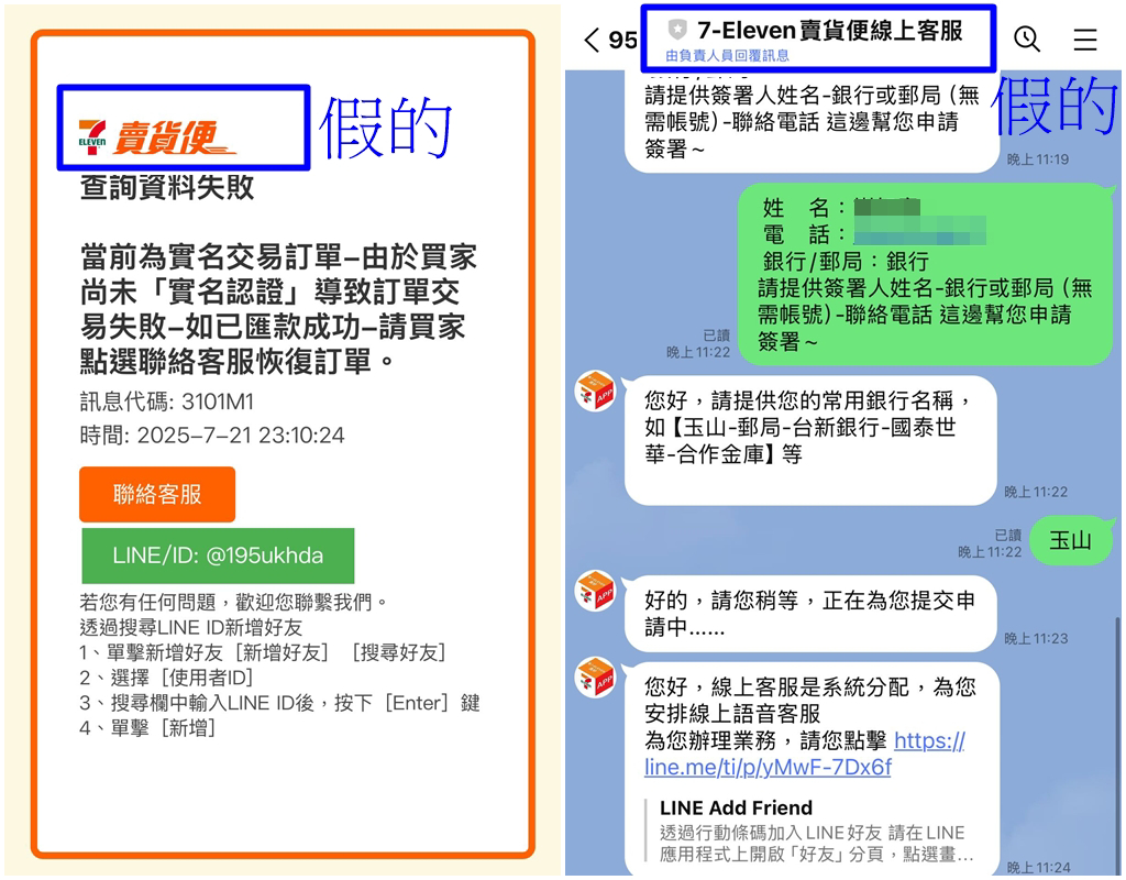 “如意”先前在Threads上發文,透露自己“為了買450元芒果醬毛巾,被詐騙27萬全部大學學費... 史上最貴毛巾(我還拿不到^^)”,為了避免再有人受害,決定公開被騙過程。 她表示,“賣家叫我在(假)賣貨便先付50元訂金就好,付了50元後跳出需要身分認證,所以我按了聯系客服”,接著又被導入到LINE的(假)賣貨便,“裡面不會問很隱私的問題,裝的很像聊天機器人,之後讓我加銀行的客服”,就這樣一步步掉入陷阱。