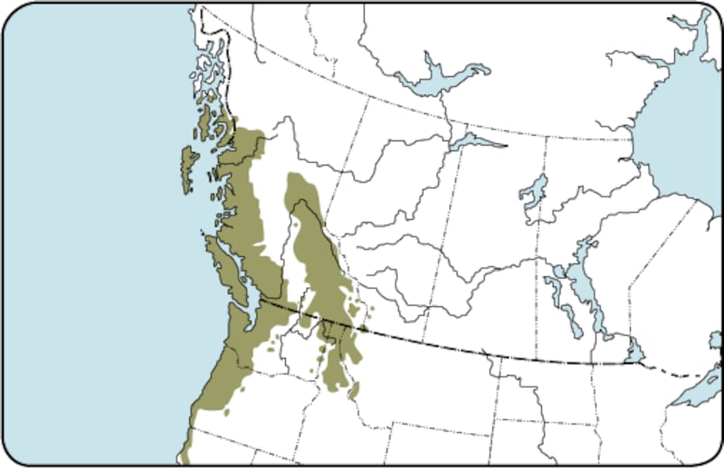 西部红柏分布图(加拿大自然资源部)