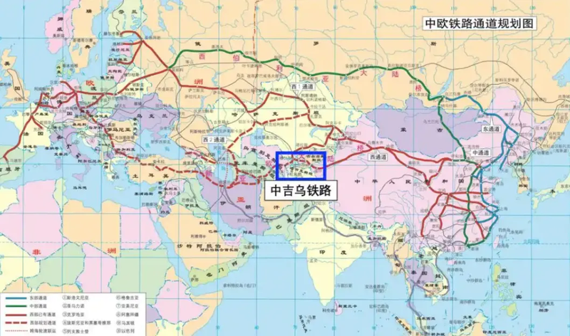 中吉乌铁路一旦建成,将与外高加索走廊相连,成为第三条亚欧大陆桥。作为全球最短的欧亚大陆桥,以后从新疆喀什出发把货物运往欧洲,将比之前缩短900公里,节省七到八天。
