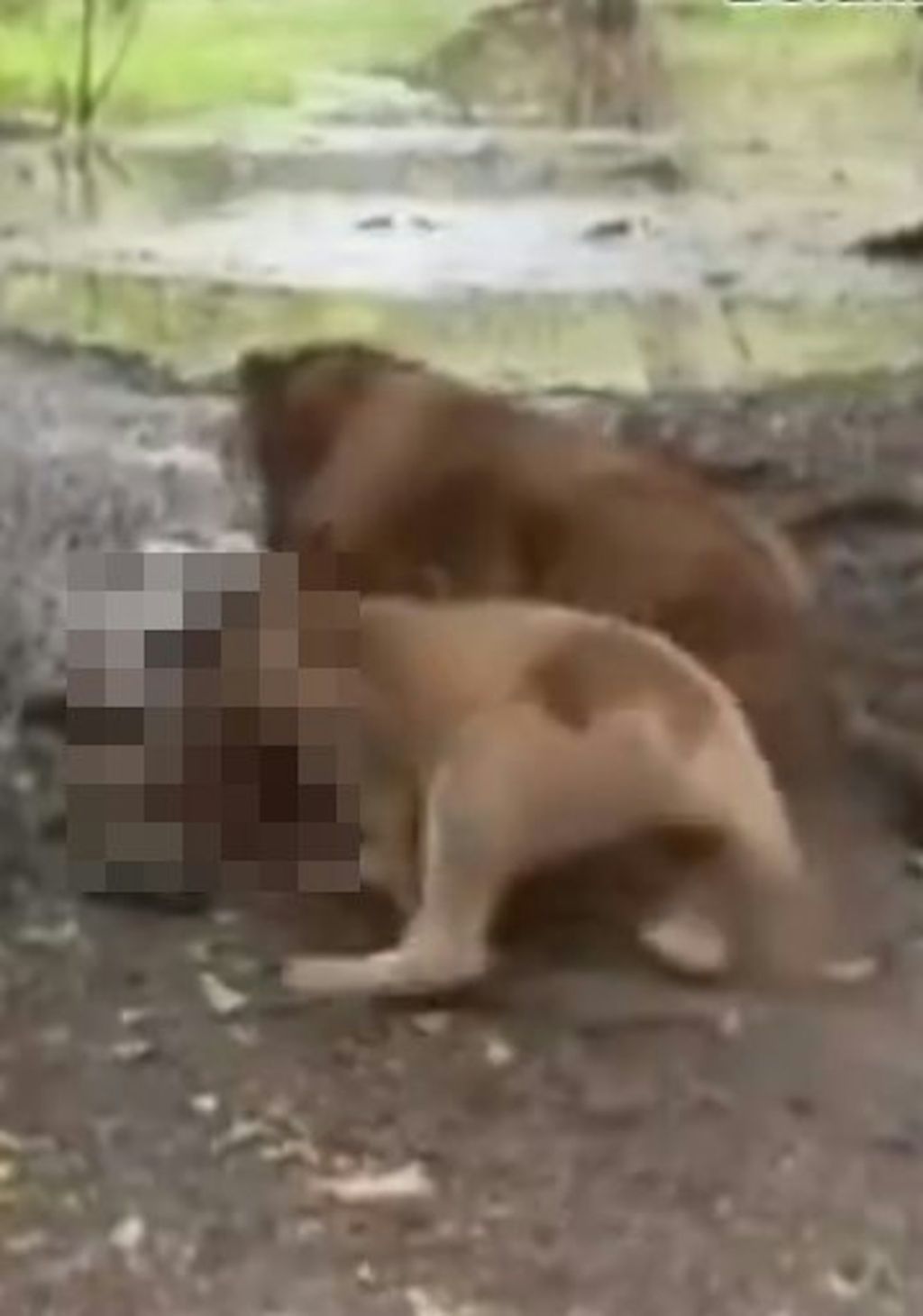 这只狮子从后方慢慢靠近,最后突然将饲养员扑倒在地并张口撕咬,随后又有3、4只狮子上前围攻,饲养员惨遭撕咬近15分钟。