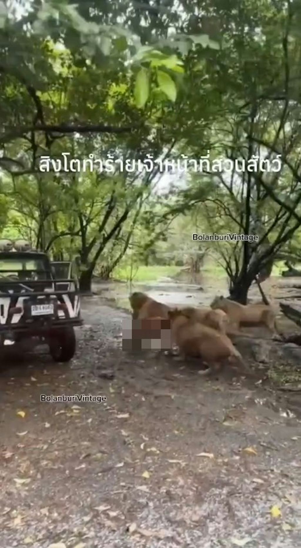泰国动物园饲养员下车惨遭狮群「开餐」 游客目睹