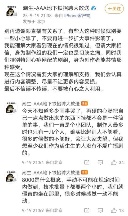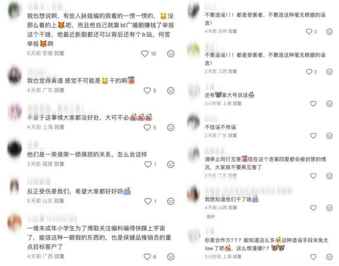 漫播平台一位參與過多起作品策劃的內部人員,則在社群平台發表回應,呼吁“別再造謠跟直播有關系了……不要再進一步擴大事件影響了”。這一回應間接否認了部分傳言,同時透露了平台及制作方的壓力。
