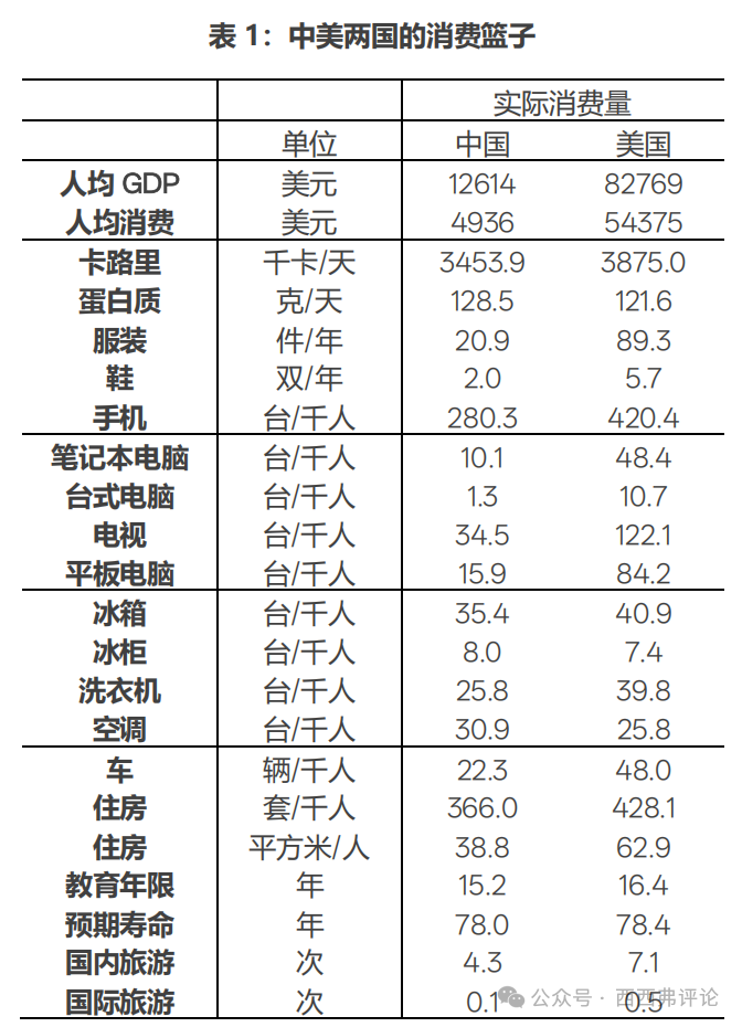 中美两国人民的居民消费,有些是中美可比的,有些是不可比的。