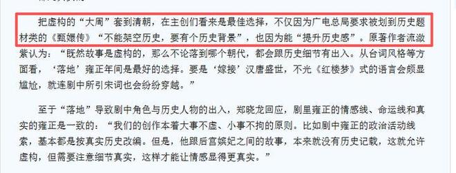 后来大火的《甄嬛传》也因为这些政策,硬生生从架空剧改编到清朝。这些都是有记录可查的。