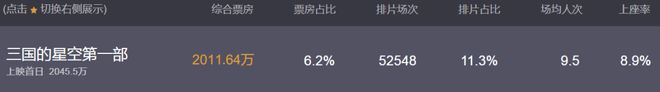 在《志愿军》这样的战争片和《刺杀小说家》这样的奇幻片夹缝中,《三国的星空》,仿佛专门给有小朋友的家庭,开辟出了一条放松通道,上映首日就获得了2045万的票房。