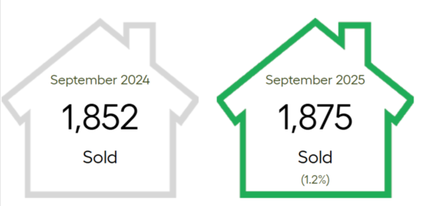 該機構的一份報告稱,2025 年 9 月該地區的住宅銷售總量為 1,875 套,比 2024 年 9 月的 1,852 套增長 1.2%。這比 10 年季節性平均值 (2,348 套) 低 20.1%。
