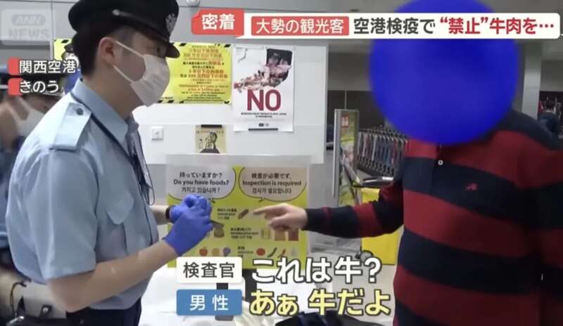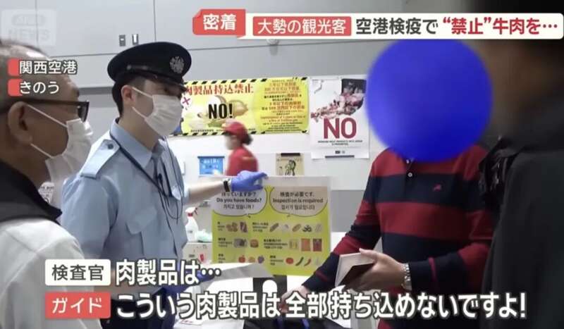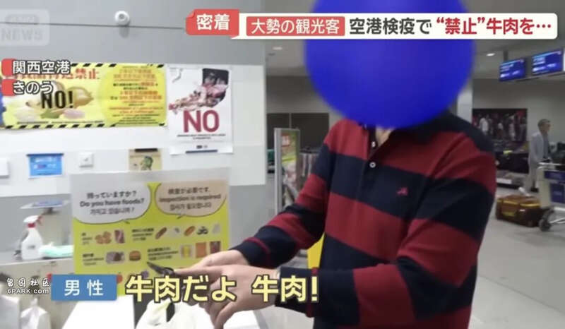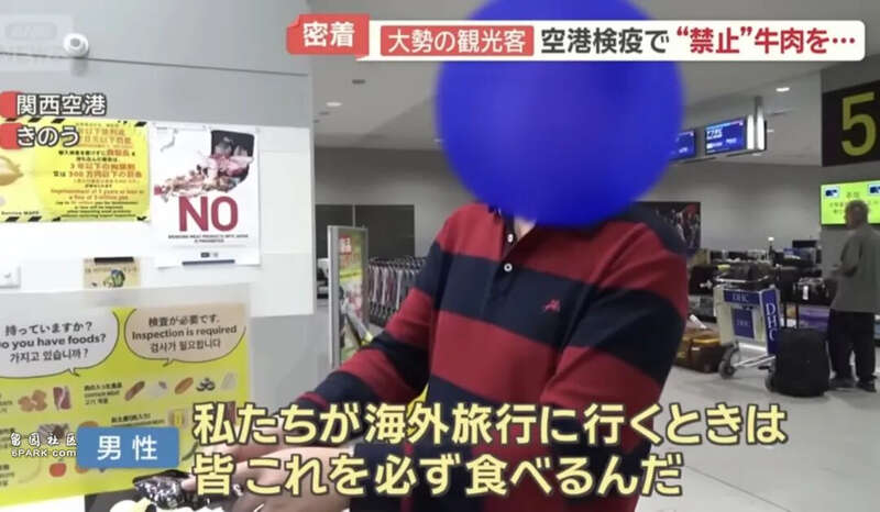 雖然日本明令禁止旅客攜帶肉類入境,但這名男子卻不以為意,還大聲說道:“我們出國旅行的時候大家都會帶這個吃的!”