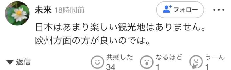 日本不是什麼有趣的觀光國家。不如考慮下去歐洲。”