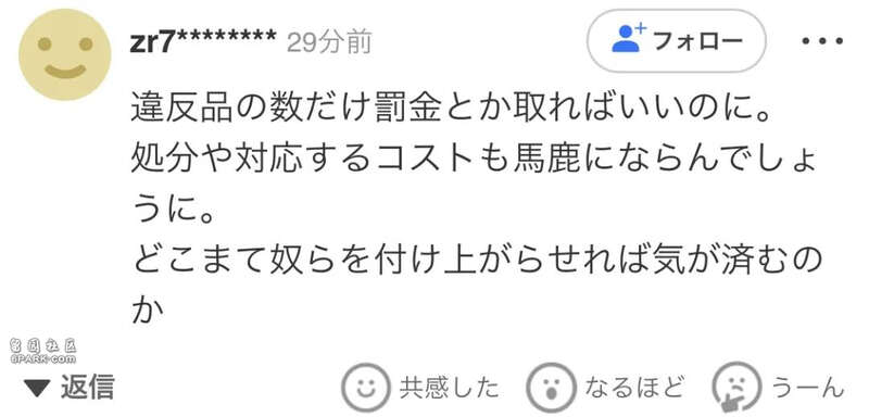 “要按違禁物品的數量來罰款就好了。處理和處置的成本也不是小數目吧。他們還要被放任到什麼時候才會罷休?”