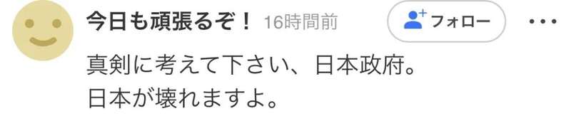 “請認真考慮下!日本政府。日本要完蛋了。”