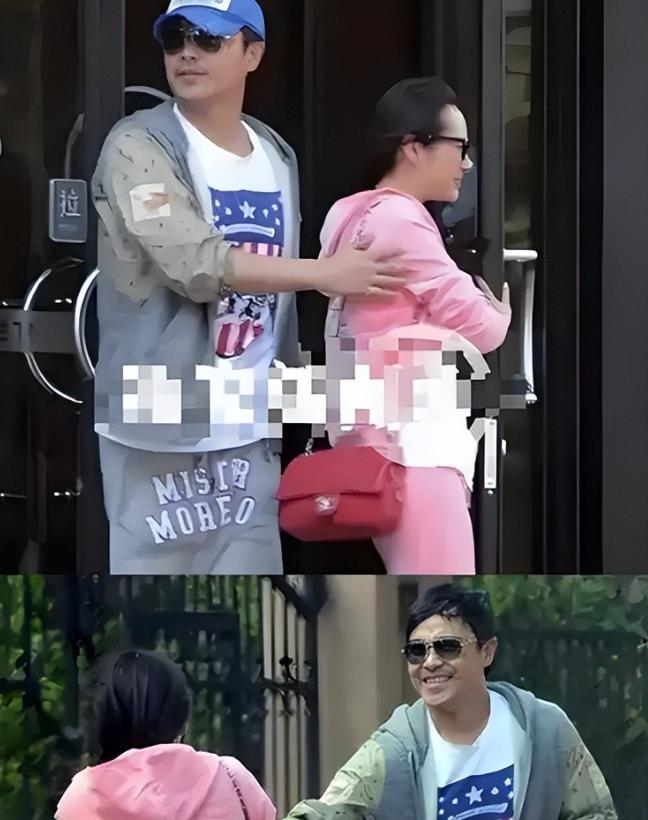 照片里,李纯和陈思诚从一家酒店出来,陈思诚走在后面,手搭在李纯的腰侧,姿势像在护着她;外面刮着风,李纯用手捂着嘴笑,陈思诚的手又搭到她的胳膊上,动作很亲昵。