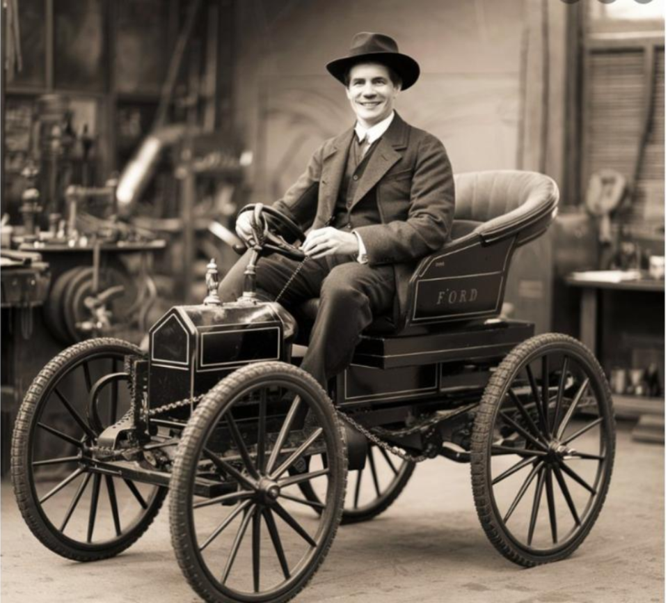 去年,Facebook 上廣為流傳著一張黑白老照片,配文寫著:「亨利·福特坐在他第一輛汽車福特四輪車中,攝於 1896 年。」結果對比歷史館藏,這照片完全不對。人物長相不符,車輛設計也錯,AI 圖中的車還有方向盤、穿模的手,堪稱 AI 幻覺的教科書案例。