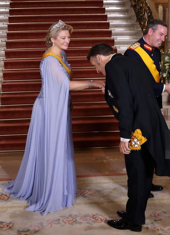 当天除了一些欧洲王室成员前来捧场之外,卢森堡邻国的首脑也到场了,例如法国总统埃玛纽埃尔·马克龙,现年47岁的他穿着晚礼服携手现年72岁的夫人布里吉特·马克龙出现在宴会大厅中。