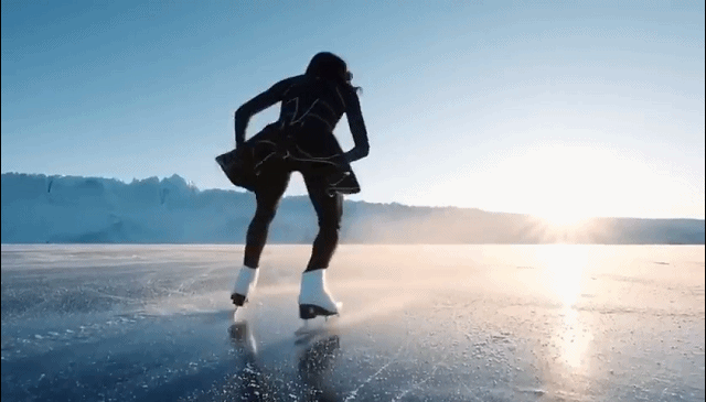 下一秒,溜冰演员和拍摄团队一同来到一处冰地,进行又一场拍摄。