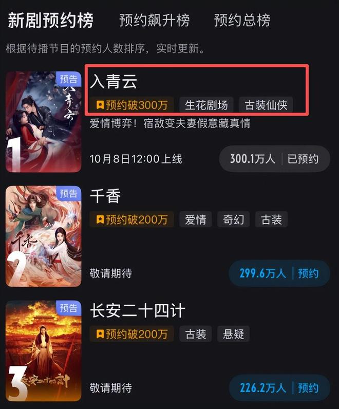 虽说如今仙侠剧已经泛滥成灾,但这部剧被业内视为打破古装剧同质化的潜力黑马,央视网文娱都在力推。而且优酷平台站内预约人数已经突破300万人,播前微博话题阅读量已超过3亿,抖音话题播放量突破10亿,成当下最受期待的古装剧之一。