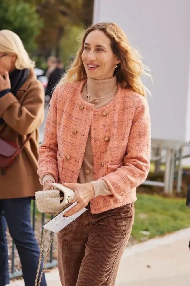 今年秋天,小香风外套变轻了,织纹更细密,廓形更顺滑。