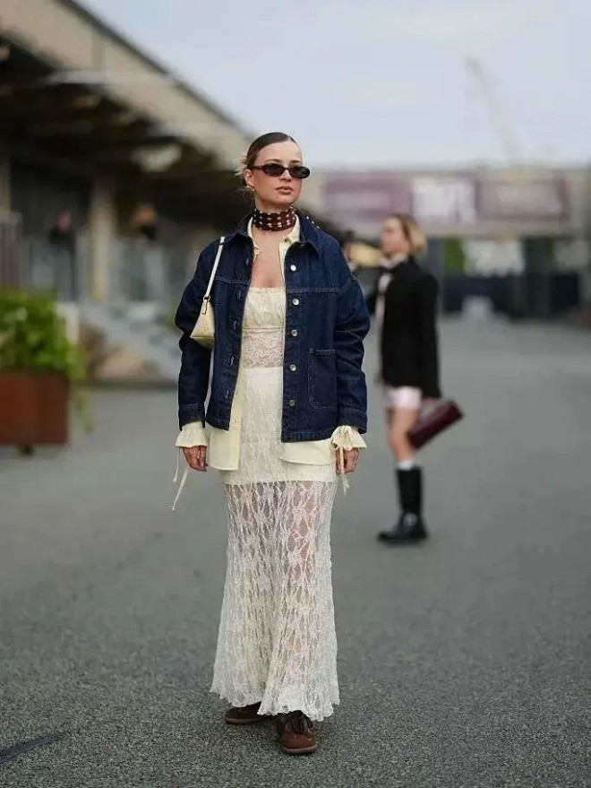 它与牛仔、半裙、针织裙都相得益彰,带着一种“贴合生活”的真实美感。