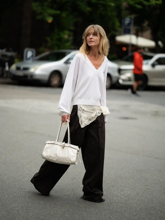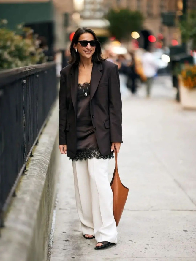 配率性的裤装能中和精致感,搭配温柔的裙子则是安静的法式优雅。