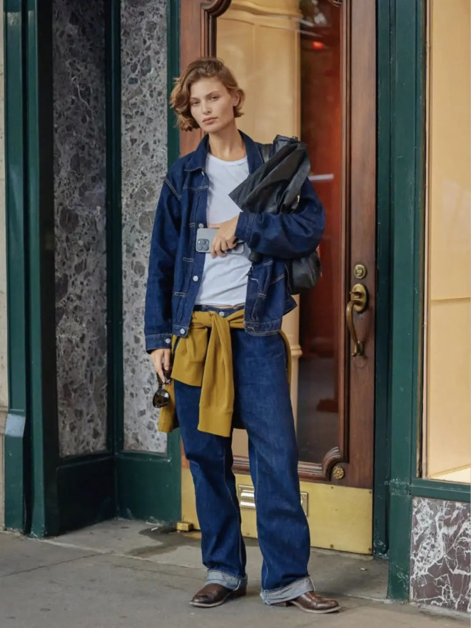一件牛仔外套、一条灰蓝直筒裤,搭配风衣或针织衫,就能轻易融入秋日街景。