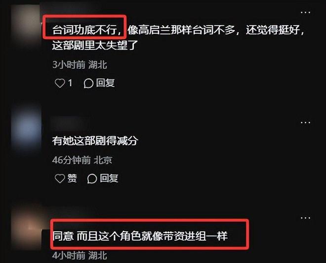 難怪在評論區中,觀眾都給出了差評,其中一位曾經還看過她演的顏值一絕的高啟蘭,可在這部劇中也徹底失望了。