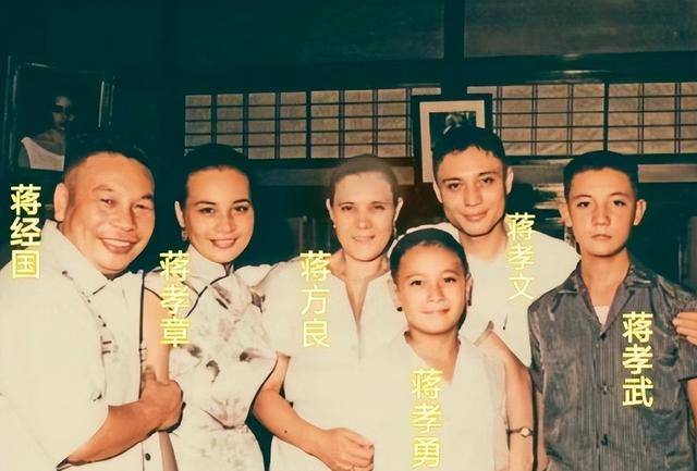 蒋介石八十大寿的时候,蒋孝章和哥哥蒋孝文曾经有一张合影,画面里两人立体的五官遗传于俄罗斯母亲蒋方良。