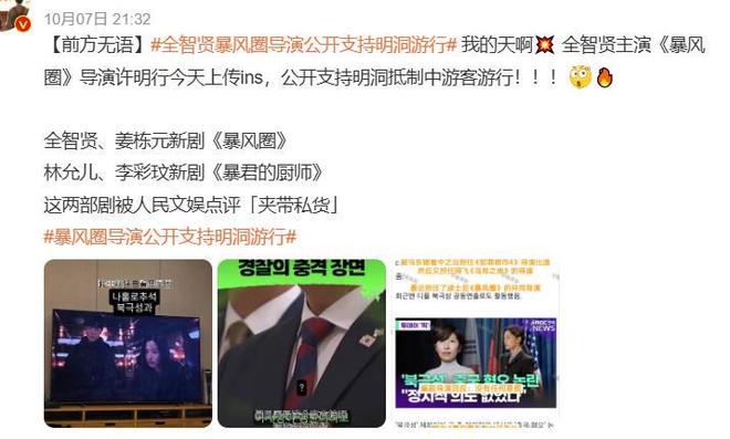 韩剧《暴风圈》惹出的争议还没有完全散去,导演许明行又在社交平台转发了一条视频, 支持抵制中国游客的活动。
