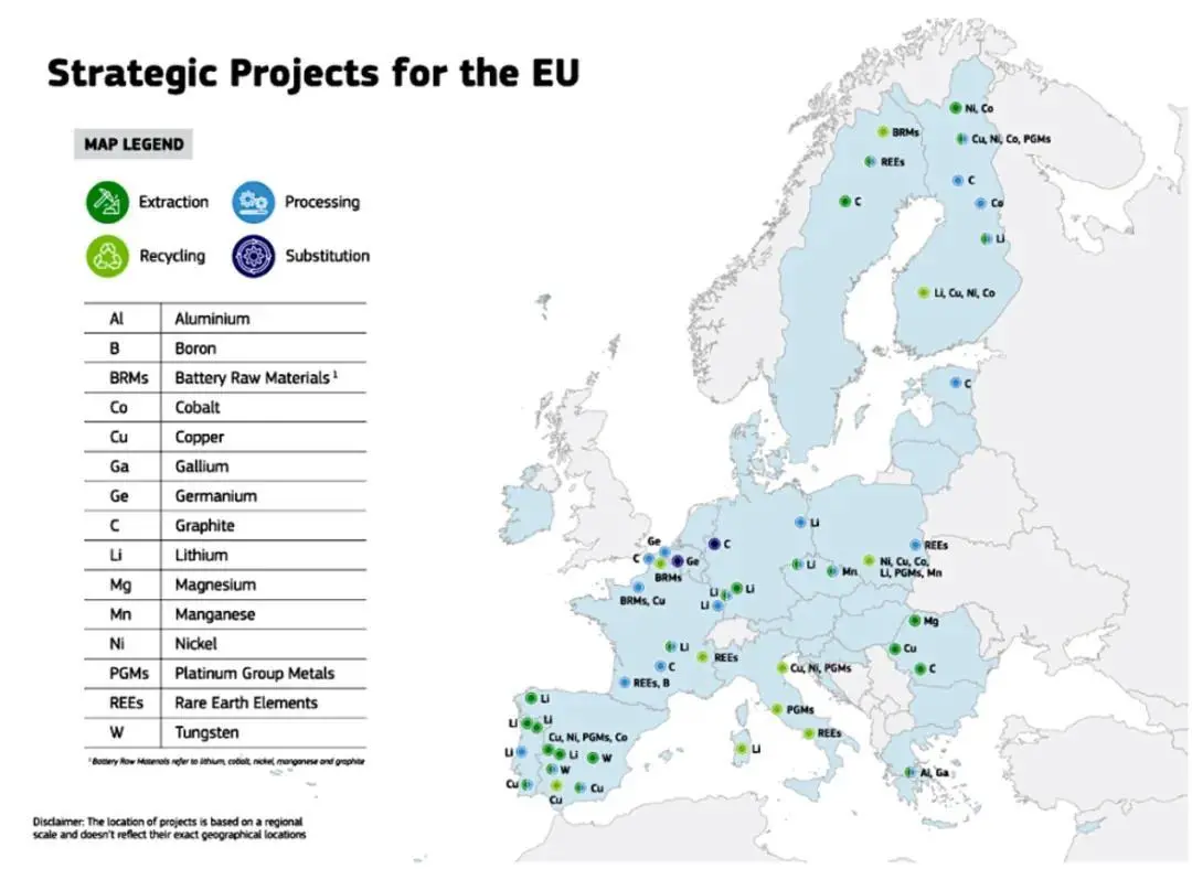 2024年5月,歐盟正式施行《關鍵原材料法案》(Critical Raw Materials Act,簡稱CRMA),首次以立法形式全面推進關鍵原材料的本土開采與加工,被歐盟官員譽為“一場革命”。