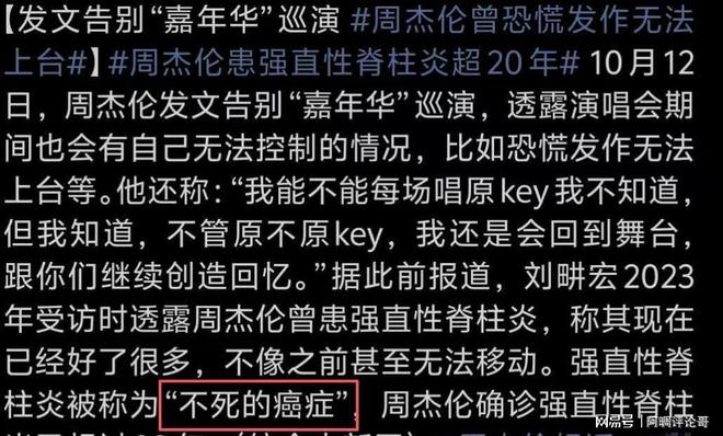 在今年10月12日的時候,有媒體在社交平台更新了關於周傑倫的消息,文章中的消息讓人們感到惋惜,文章內容是周傑倫發文告別了巡演,