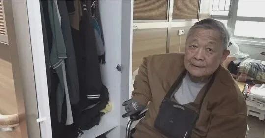 无奈之下,秦煌只能申请进入香港的慈善养老院。每月靠救济金过活,吃穿都要靠机构安排。他的房间不足10平方米,摆下床和轮椅就没了下脚处。